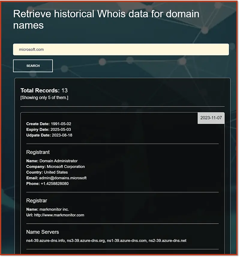 Together, these 3 tools provide you with a comprehensive view of domain registrations, domain names owned, the registrants, registrars, and all information available. This allows you to inspect the individual domains, explore an entity’s online footprint, and obtain a greater understanding of the historical context of domain ownership.